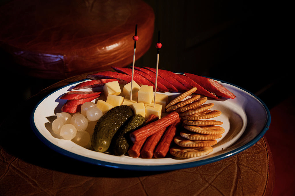 Jatz & Snacks — cabanossi, cubed cheddar, pickled onions, Jatz crackers (GFO, VO)